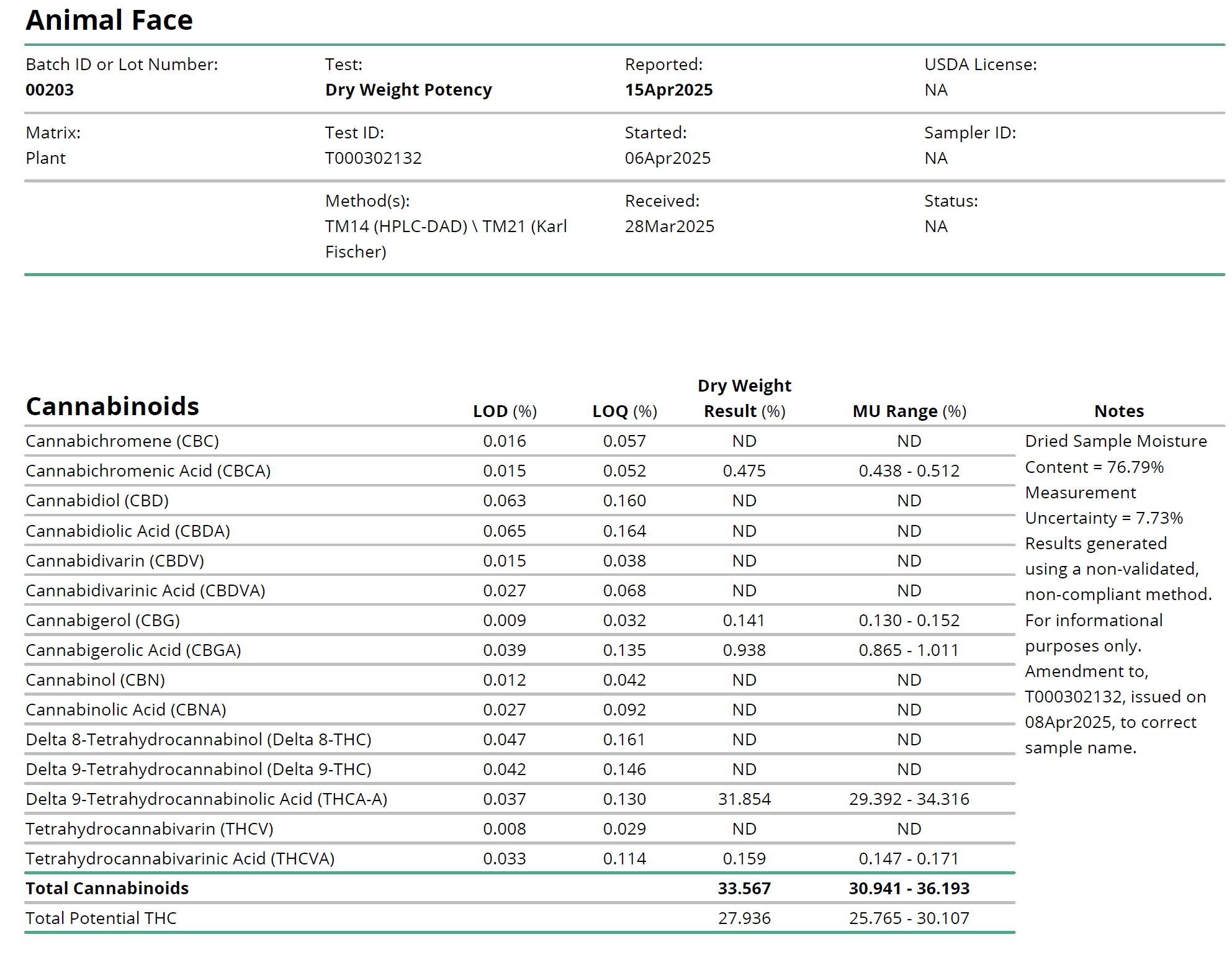 - ✔️ THCA and total cannabinoid content